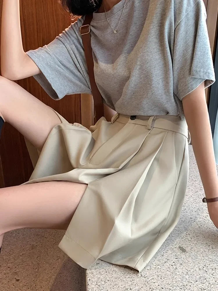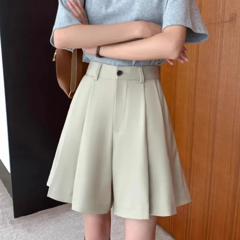 Découvrez ce short femme taille haute large au style coréen tendance et à la coupe ample ultra-confortable. Parfait pour l'automne et toutes saisons, ce short polyvalent allie style décontracté et élégance moderne.