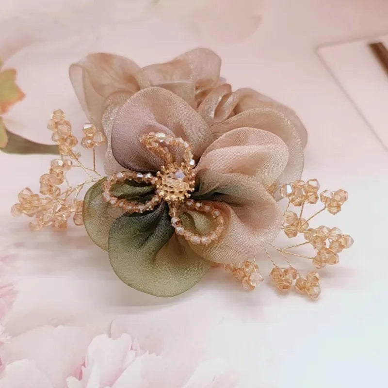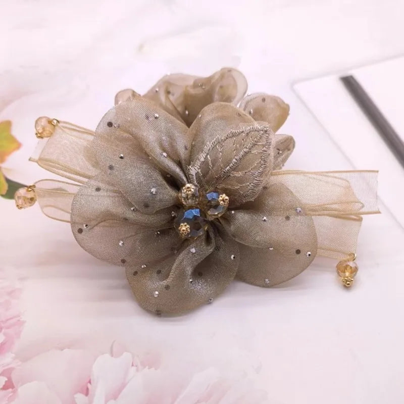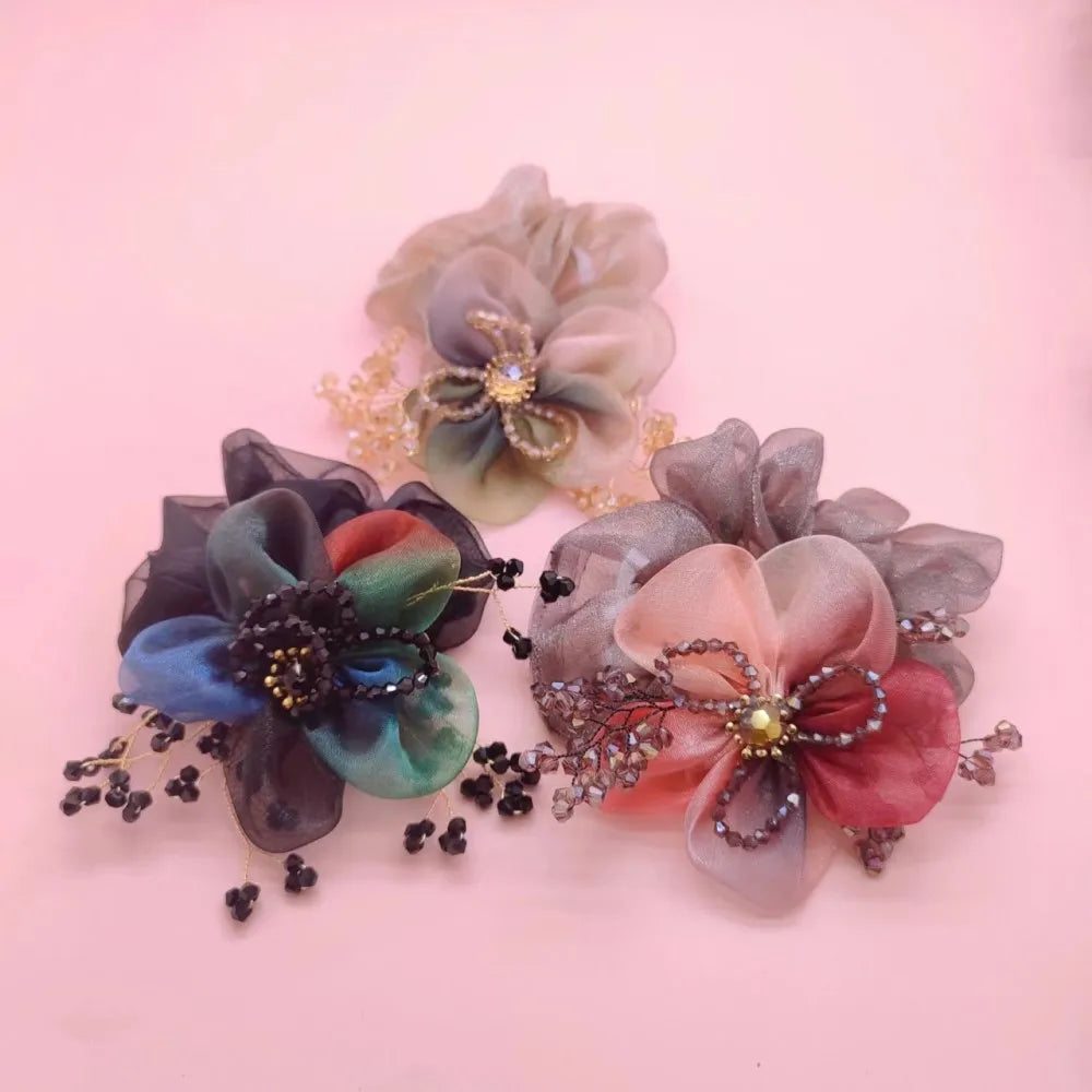 Chouchou Fleur en Organza avec Strass - Élégance Cristalline