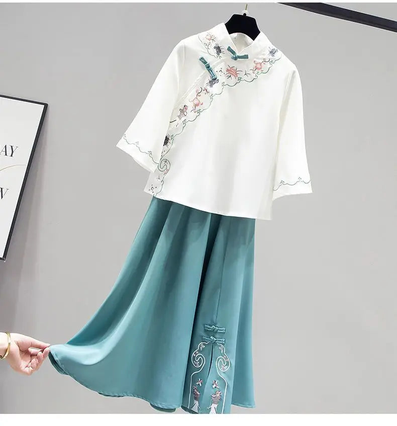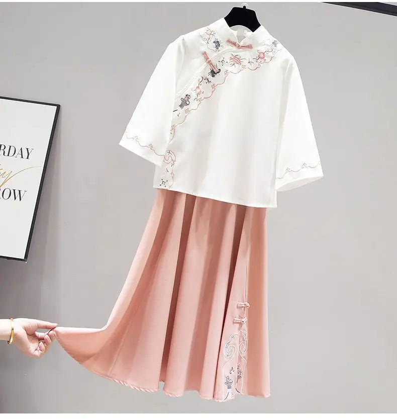 Ensemble Hanfu Chinois Brodé Papillon 2 Pièces | MDN