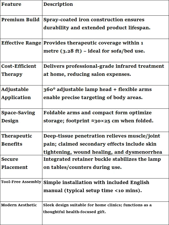 - Puissance 150W - Chaleur infrarouge pénétrante et efficace