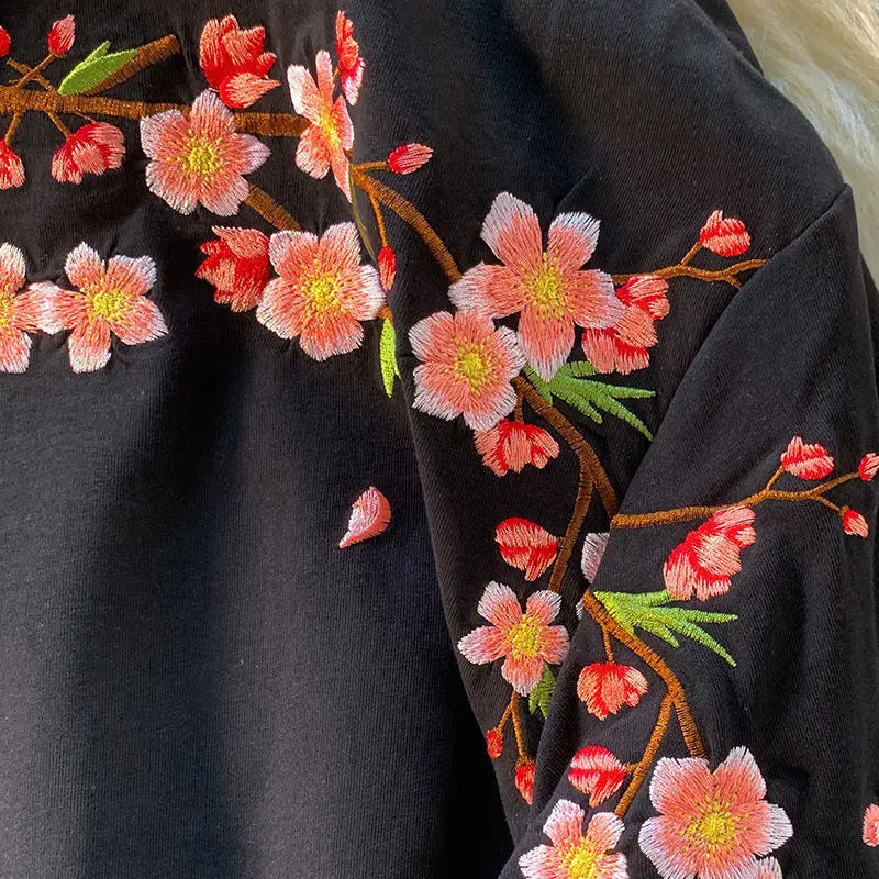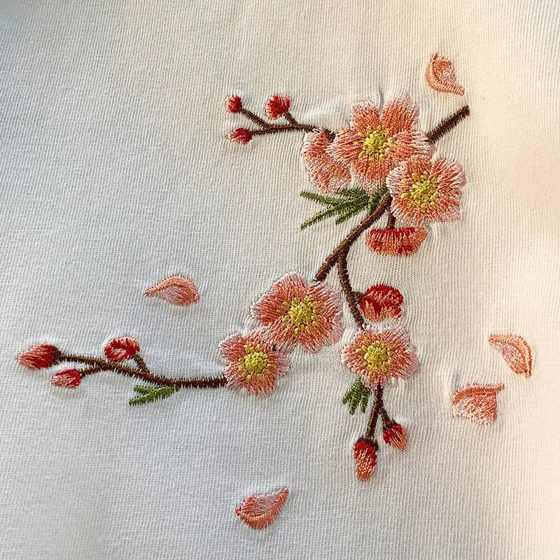 Ajoutez ce t-shirt broderie cerisiers à votre panier maintenant et adoptez un style japonais raffiné !