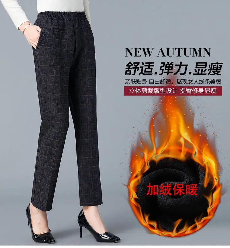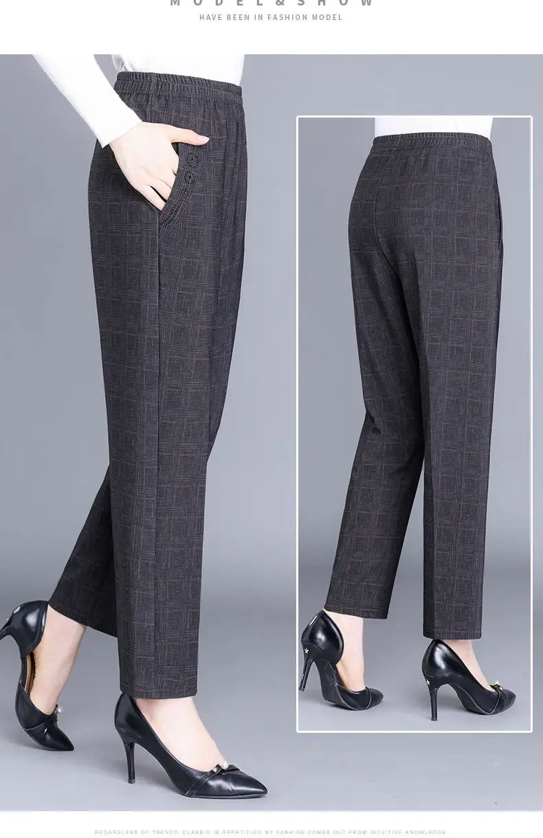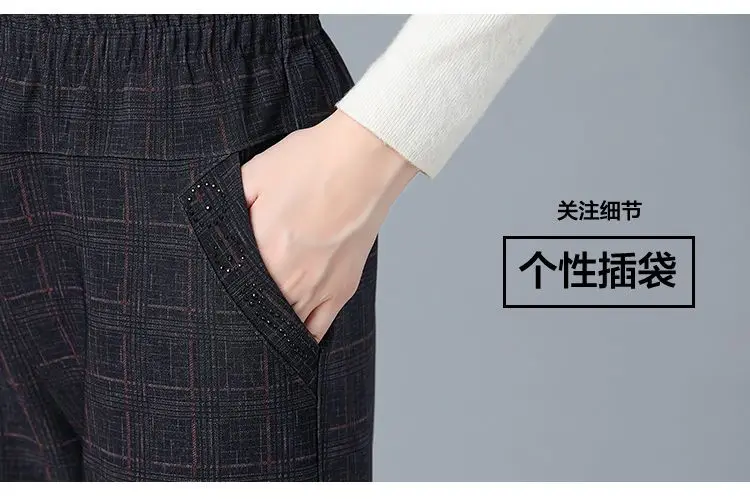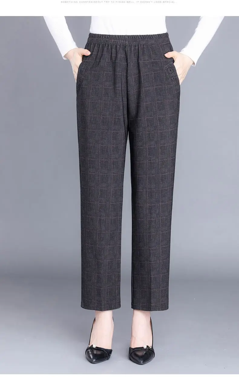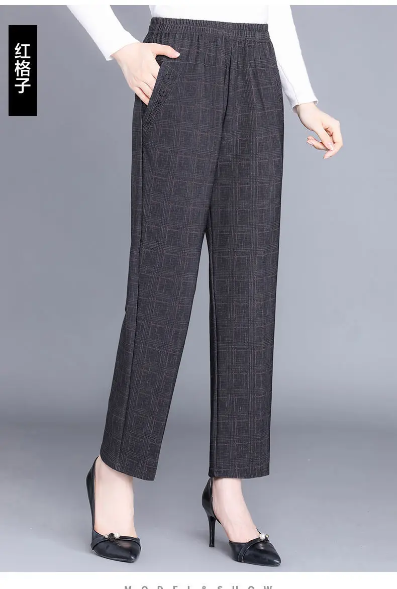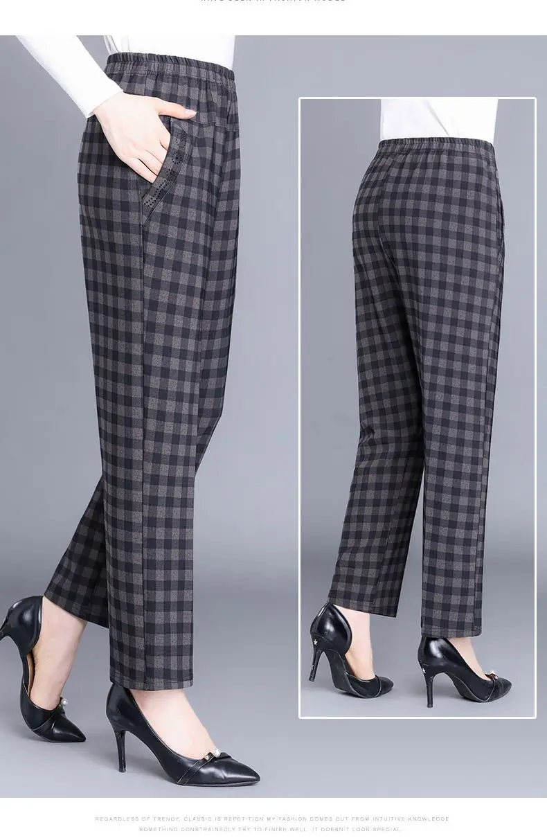 Pantalon Femme Carreaux Taille Élastique - Longueur Cheville Automne Hiver | MDN