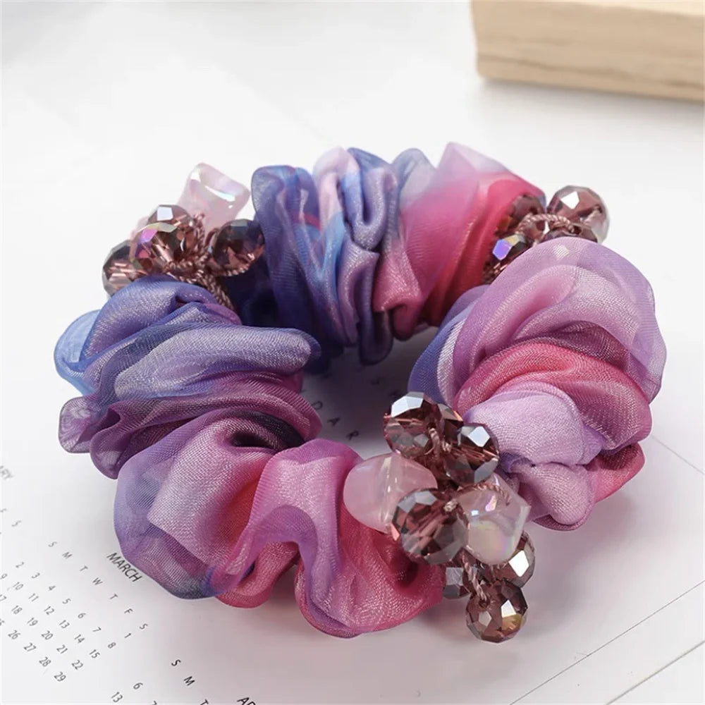 Ce chouchou élégant combine la délicatesse de l'organza transparent avec l'éclat des perles brillantes et une jolie fleur décorative. Parfait pour les filles et femmes qui recherchent un accessoire cheveux raffiné et féminin.