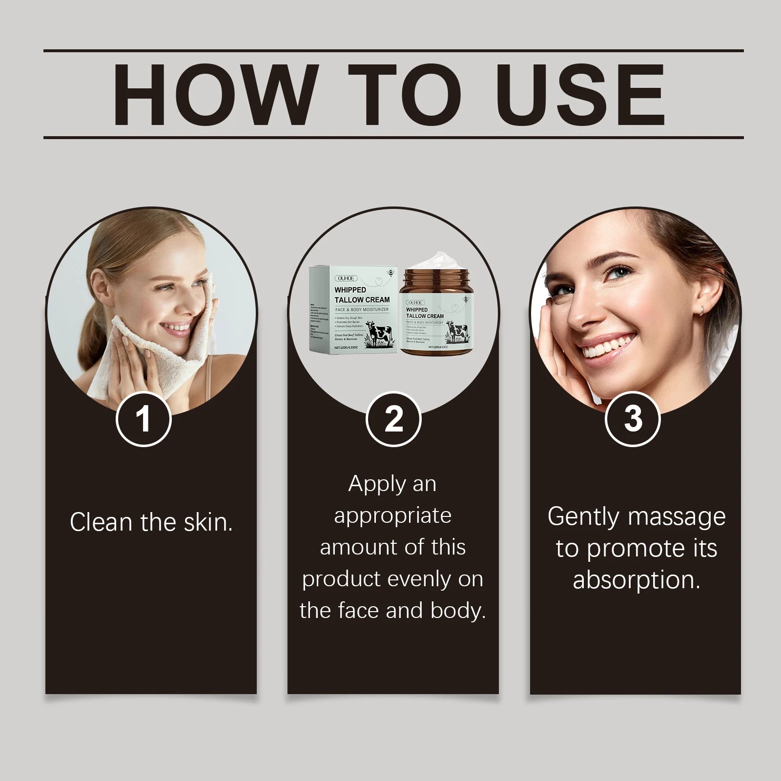 Découvrez la puissance hydratante de notre crème au suif de bœuf, une formule révolutionnaire qui hydrate intensément, éclaircit le teint, adoucit et raffermit la peau du corps. Cette crème à la texture délicate offre une hydratation profonde, réduit les rides, minimise les pores et contrôle le sébum pour une peau éclatante et ferme.