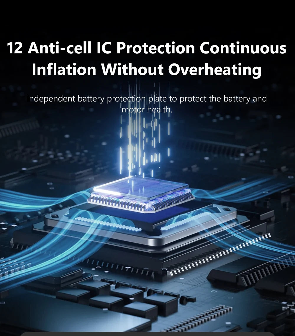 - Puissance 150 PSI - Gonfle rapidement tous types de pneus