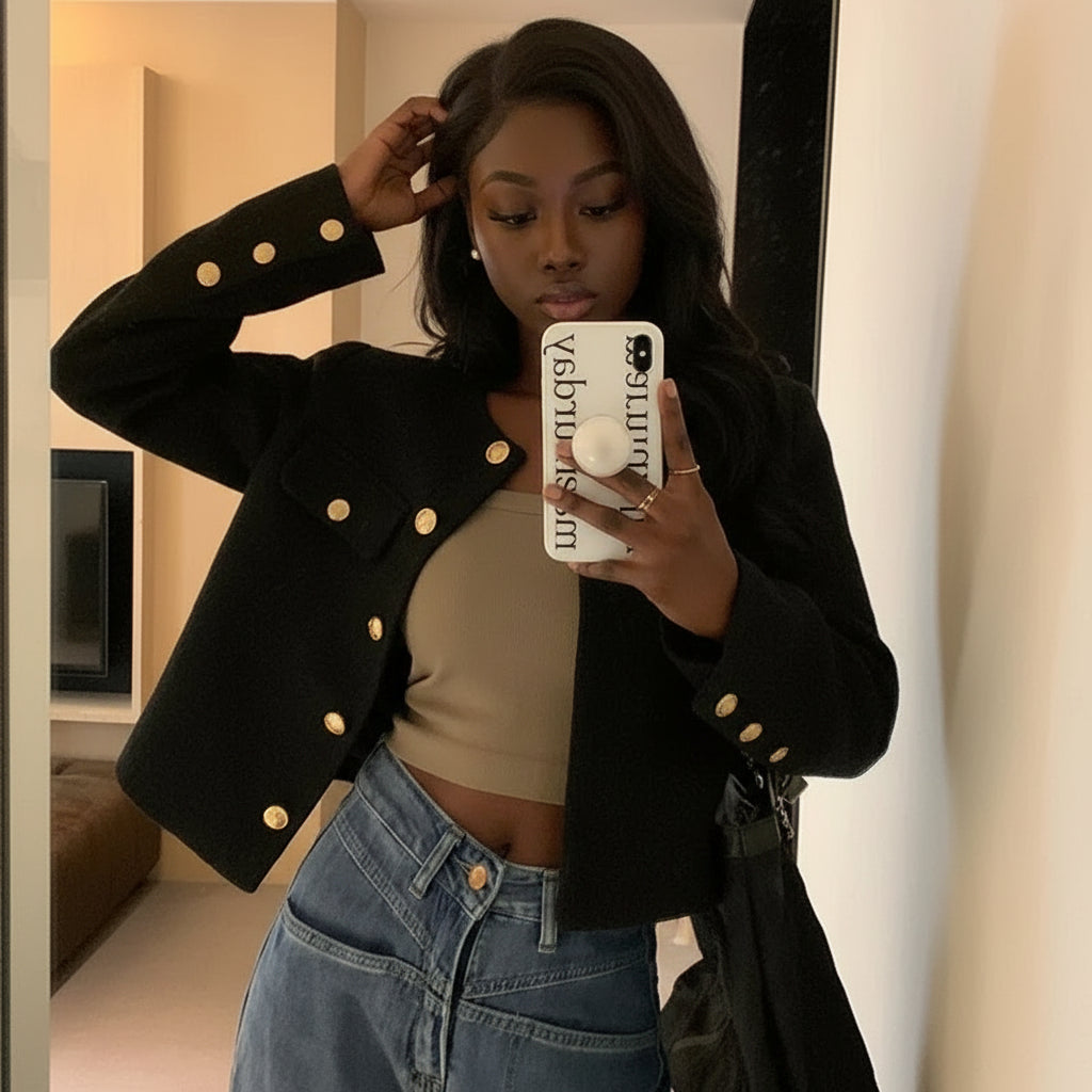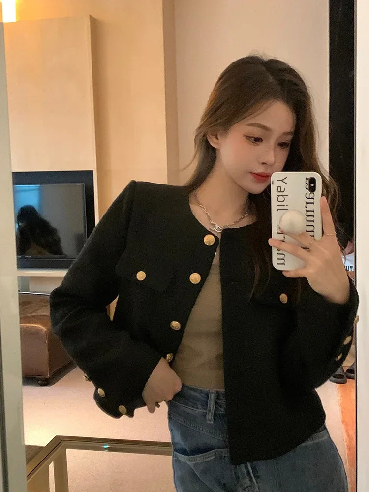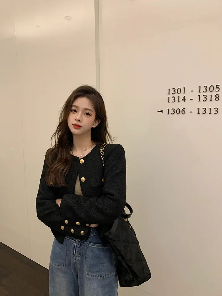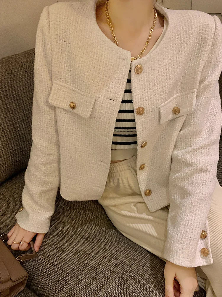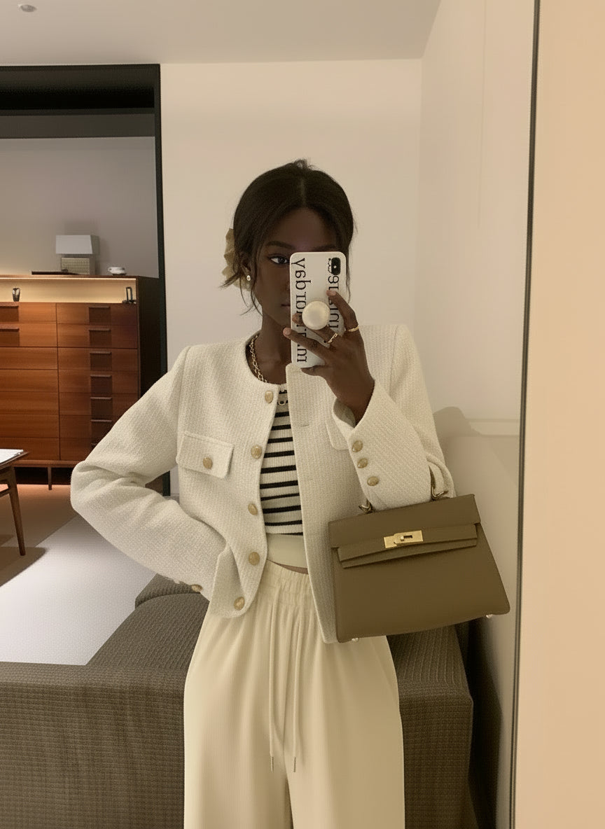 Veste Tweed Courte Élégante Femme - Style Haut de Gamme Automne-Hiver