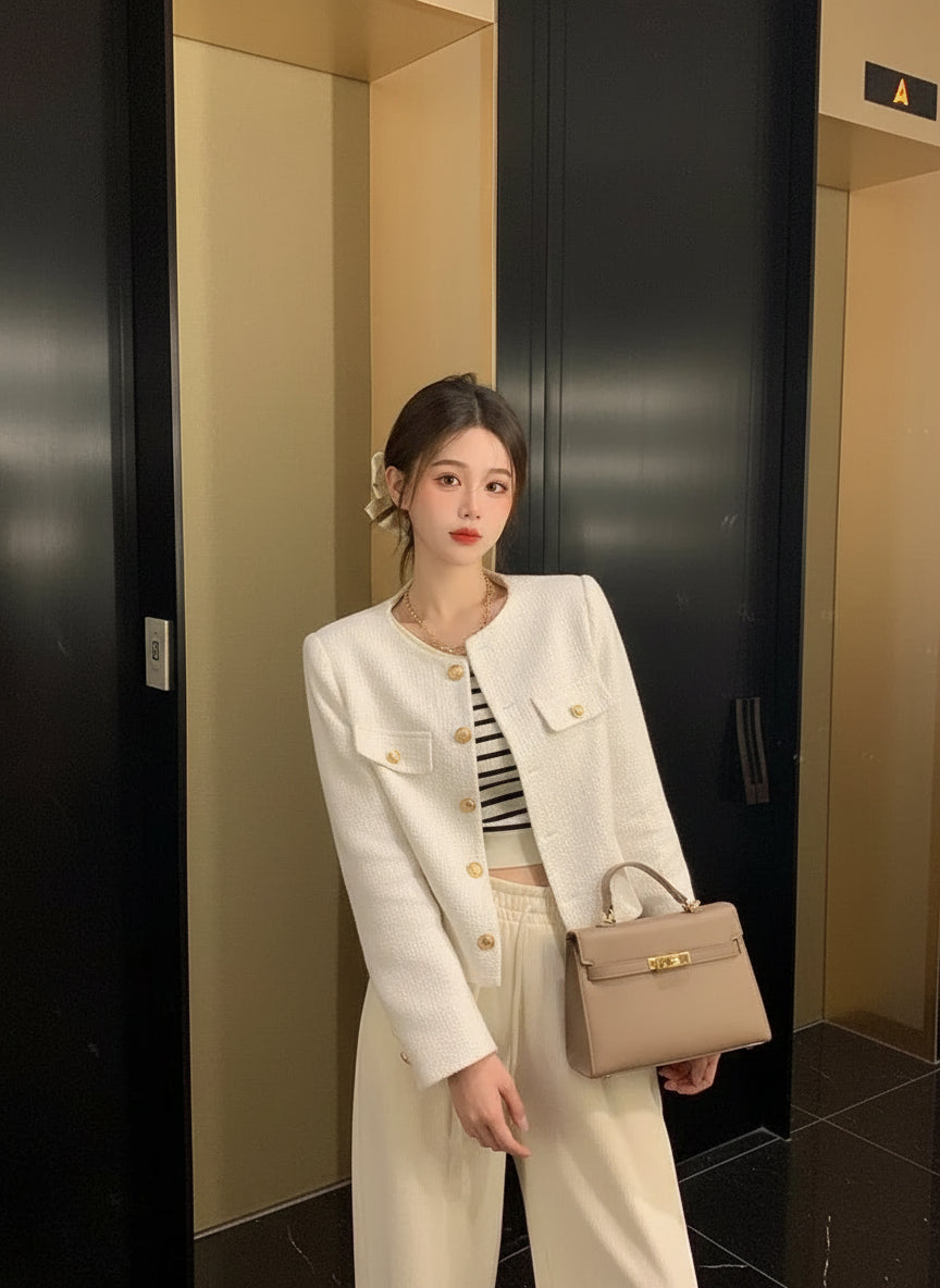 Veste Tweed Courte Élégante Femme Automne-Hiver | MDN