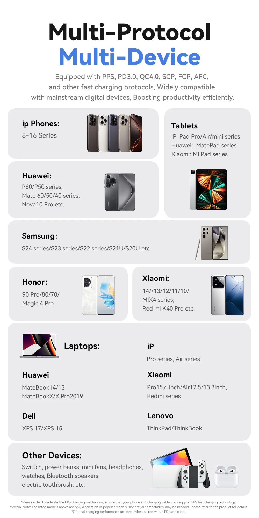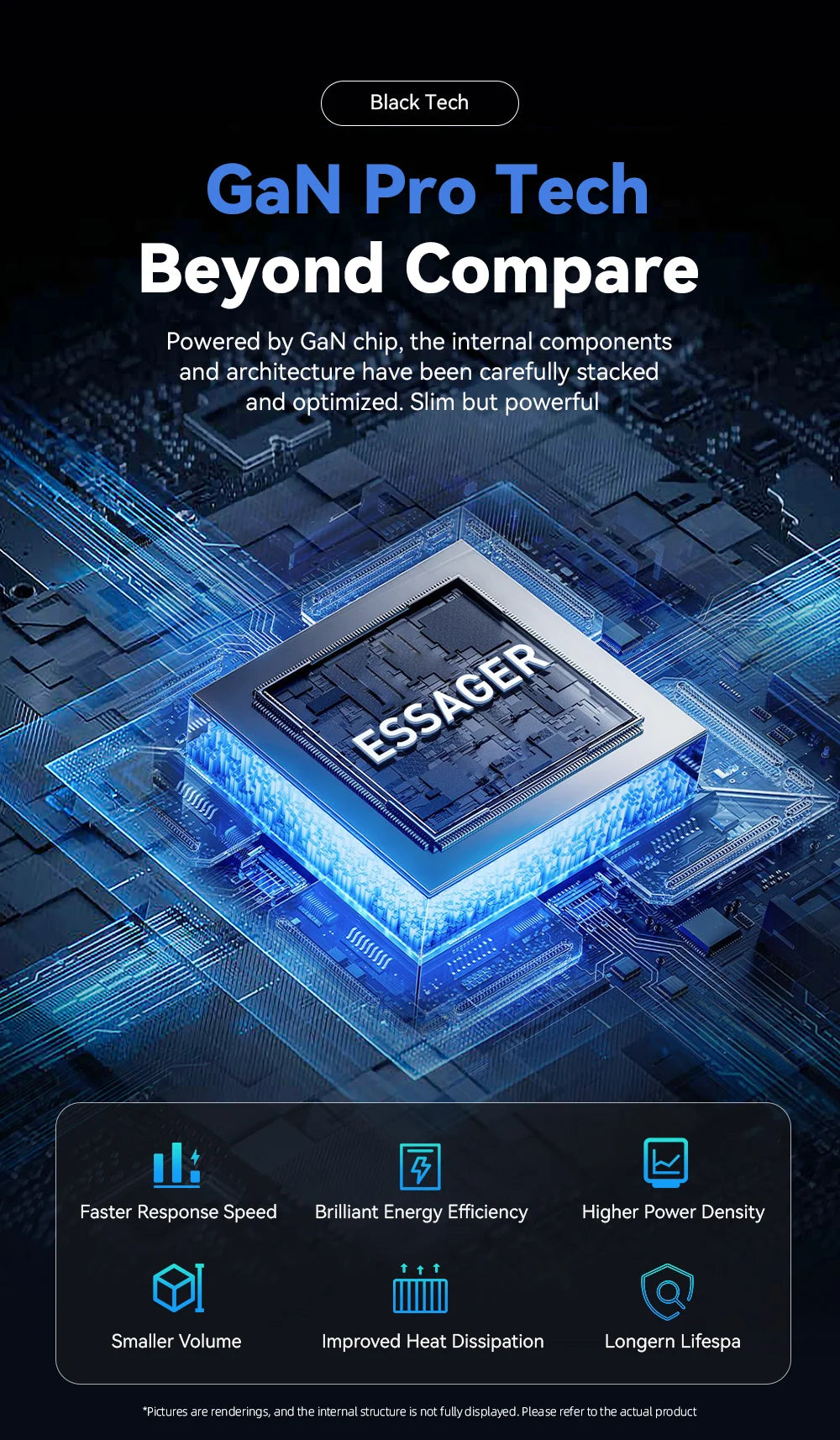 La technologie GaN permet une efficacité énergétique supérieure de 95%, une réduction de la chaleur générée et un format ultra-compact. Fini les chargeurs encombrants, profitez d'une station de charge puissante qui tient dans votre sac !