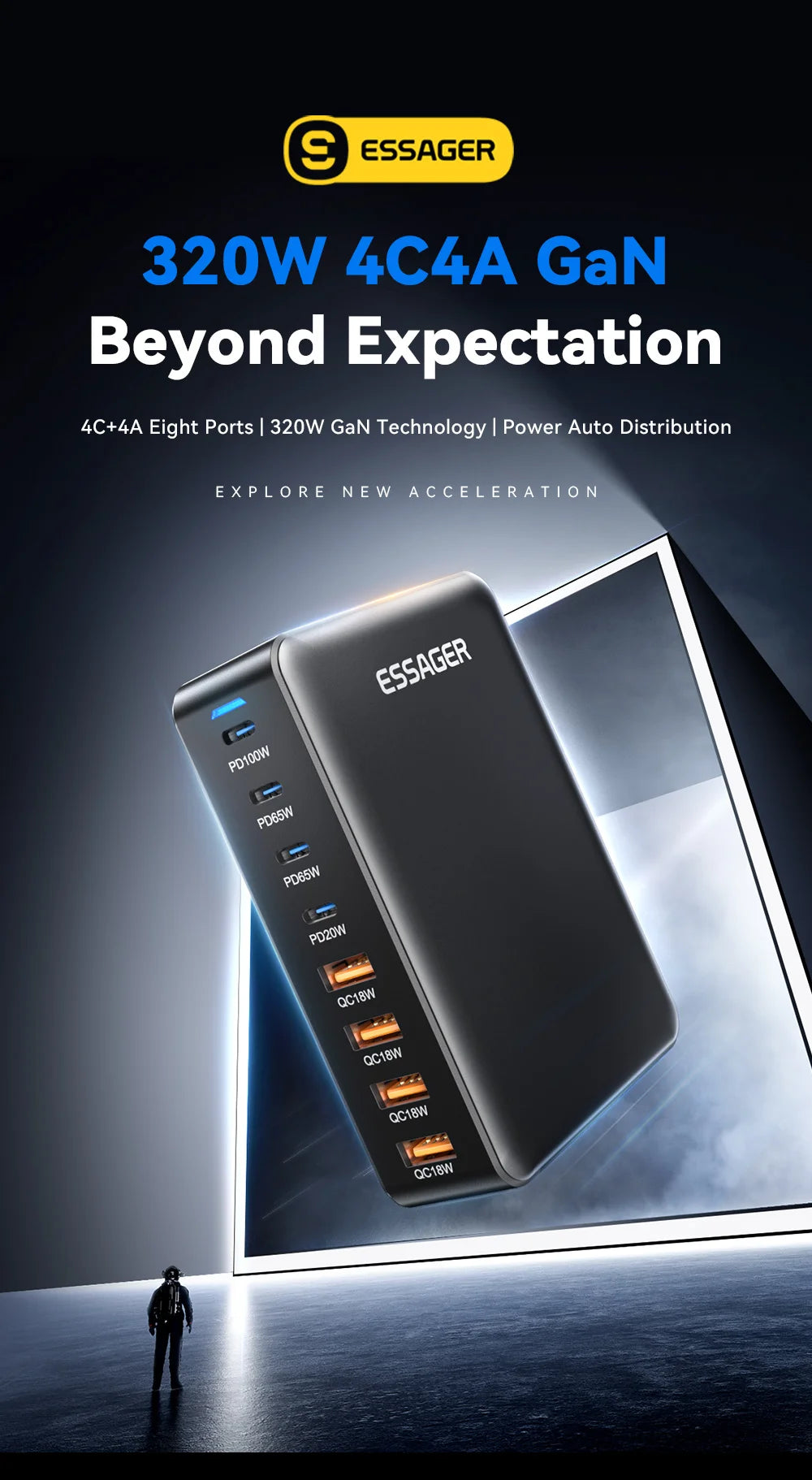Chargeur GaN 320W Essager - Station de Charge 8 Ports USB-C