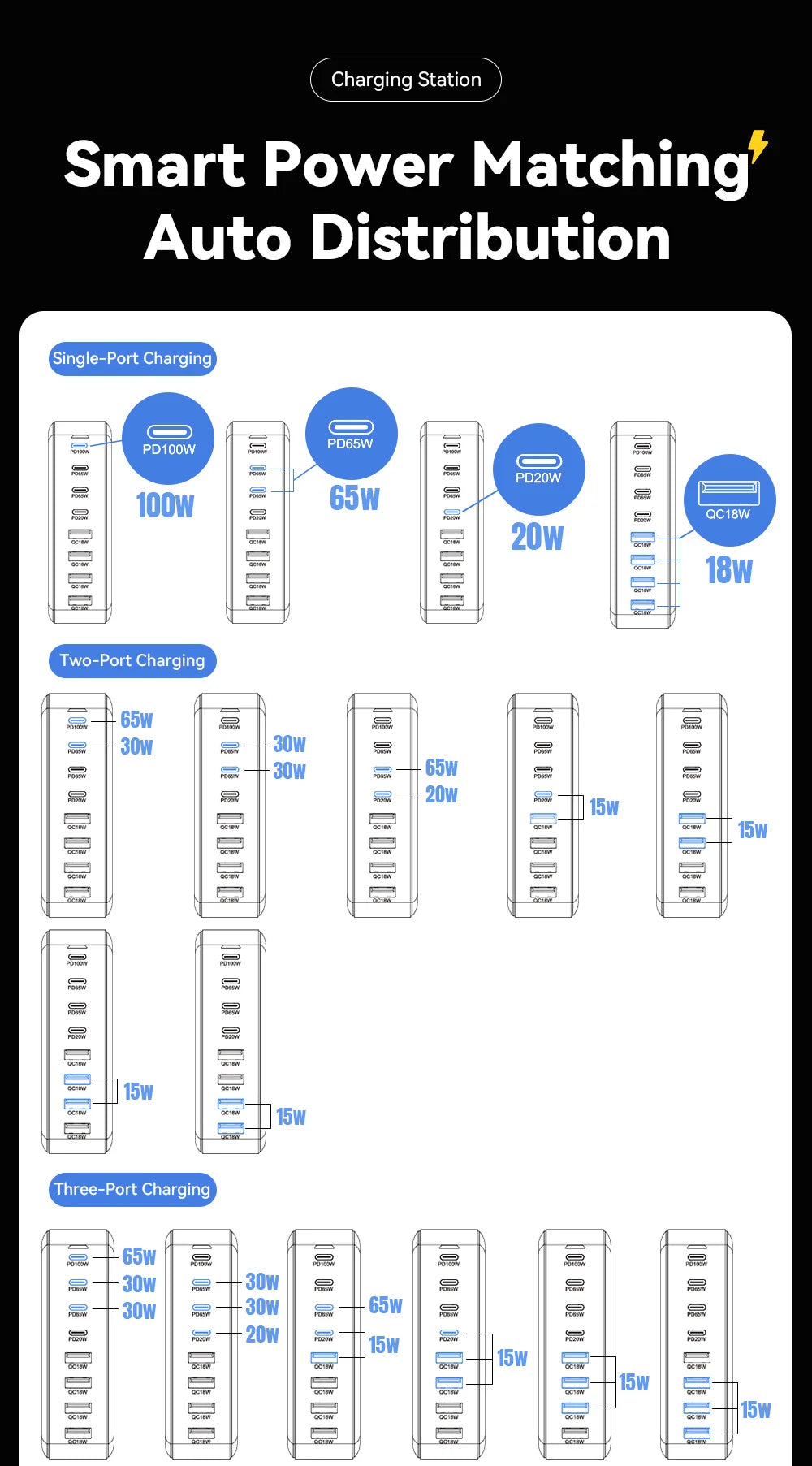 - Puissance totale 320W - Charge simultanée de 8 appareils sans compromis