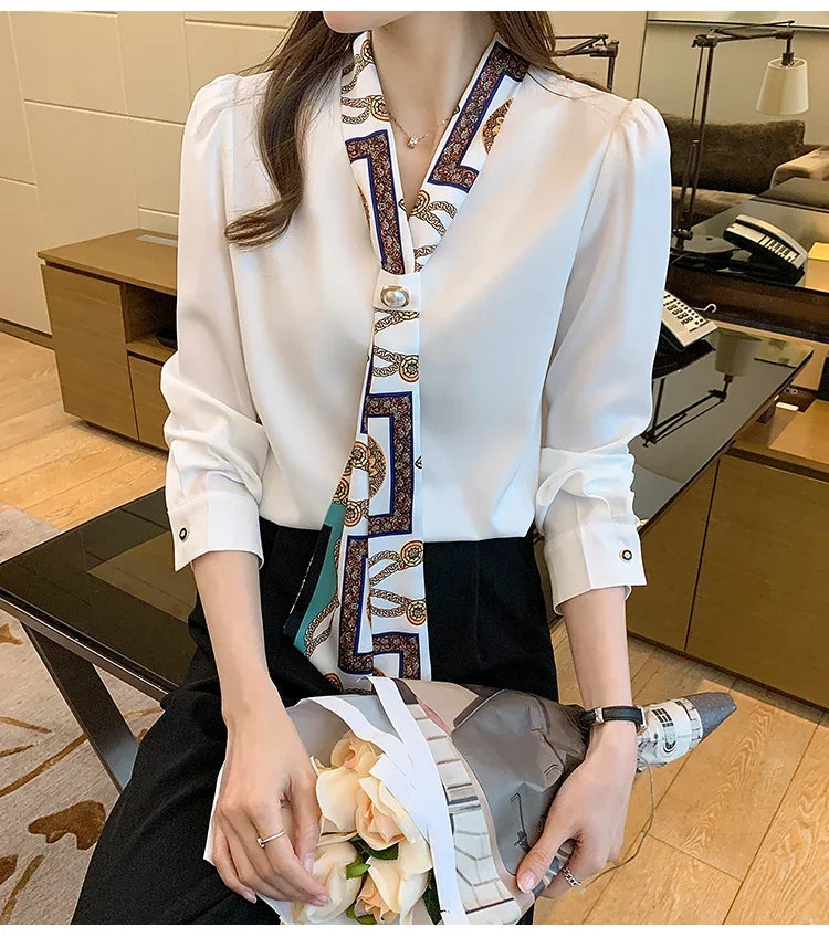 Chemise Chiffon Noeud Femme Col V Manches Longues | MDN