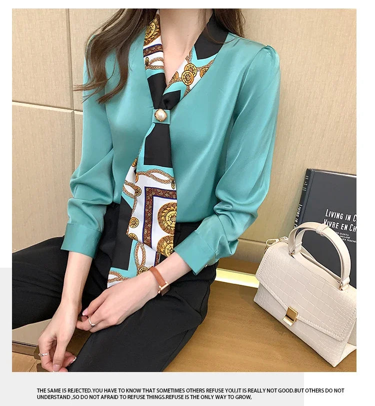 Chemise Chiffon Noeud Femme Col V - Élégance Bureau Sophistiquée