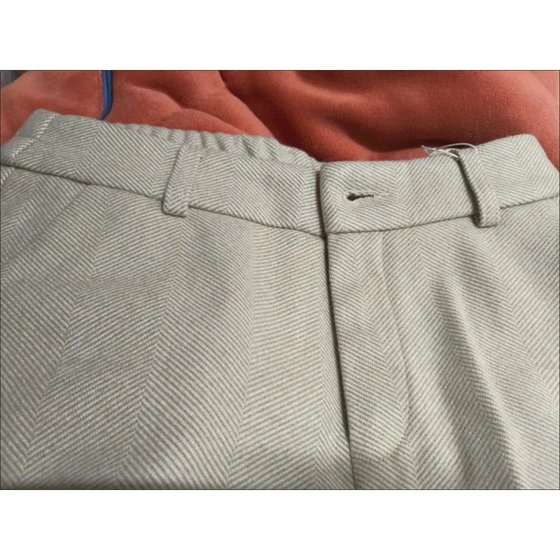 Pantalon femme en tweed taille haute, parfait pour l'automne et l'hiver. Sa coupe droite et son tissu épais à chevrons offrent chaleur et élégance pour la saison froide.