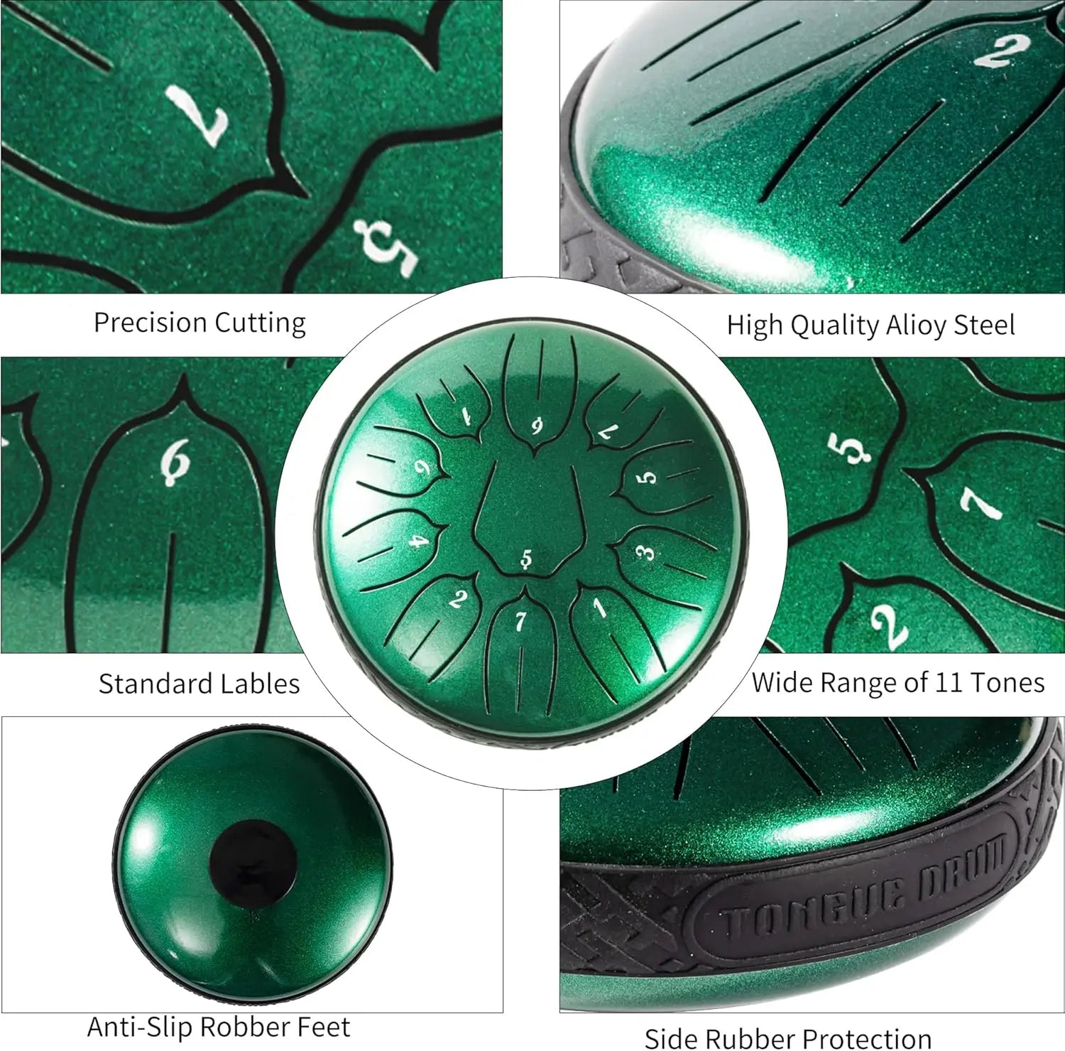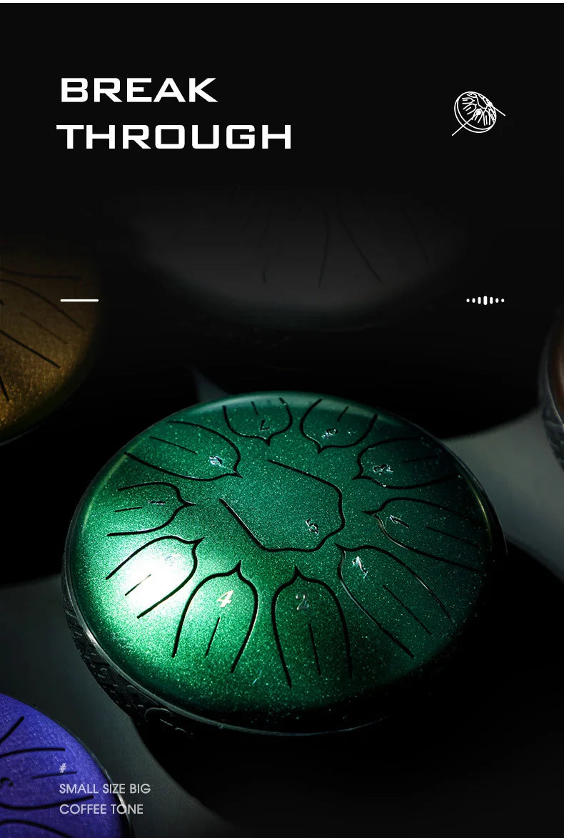 Découvrez la beauté sonore du tambour langue acier HLURU, un instrument de percussion éthéré de 6 pouces avec 11 notes en ton D. Parfait pour la méditation, le yoga et la relaxation profonde.