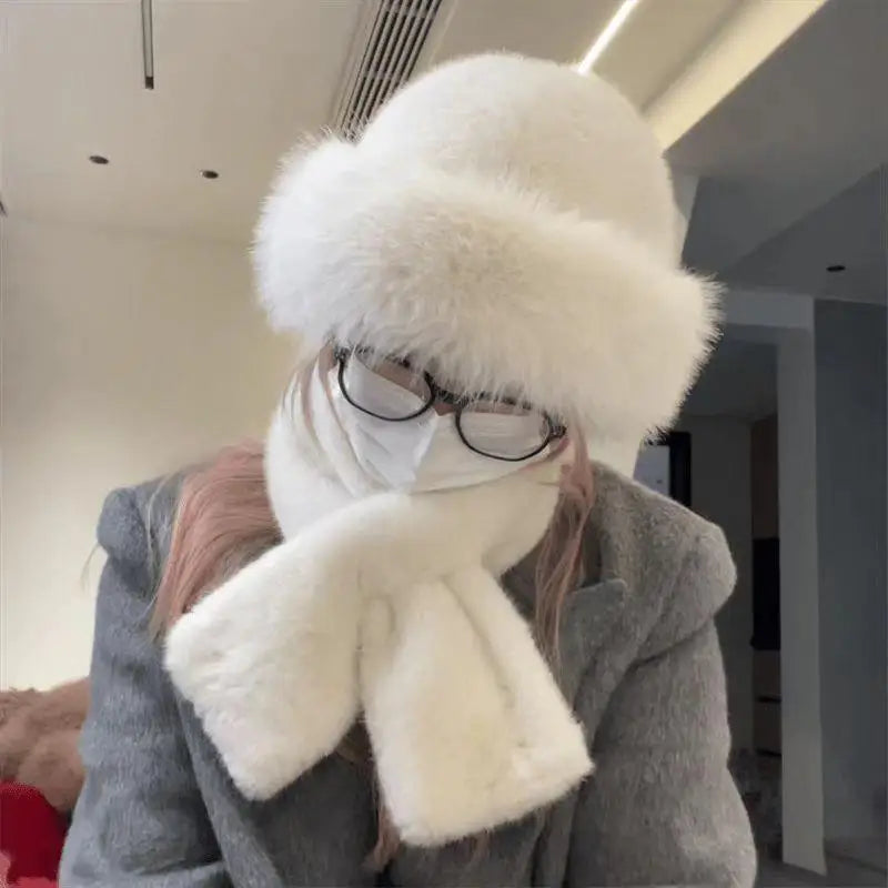 Bonnet Chapka Mongol Femme Fourrure Peluche - Écharpe Croisée Intégrée Coupe-Vent Protection Oreilles | MDN