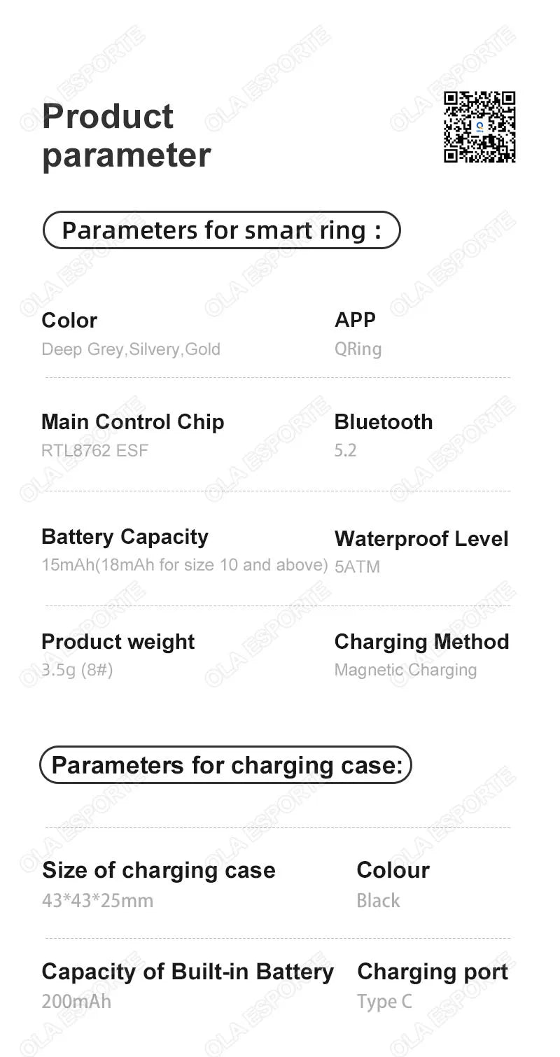 Bague Connectée Smart Ring Santé Température Étanche | MDN