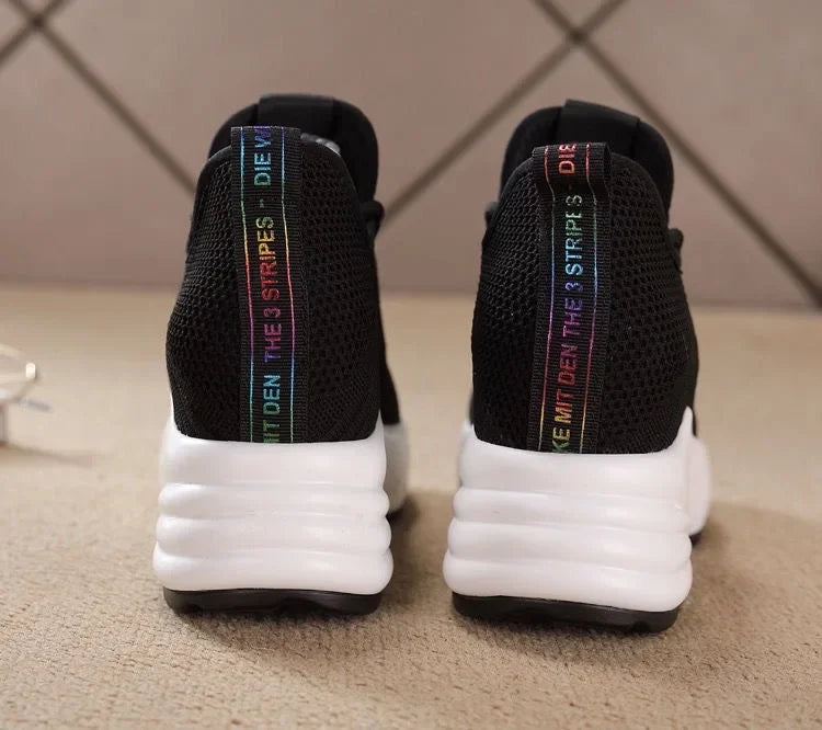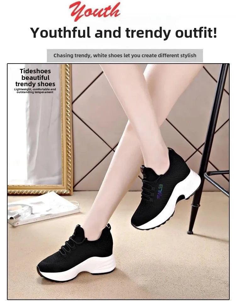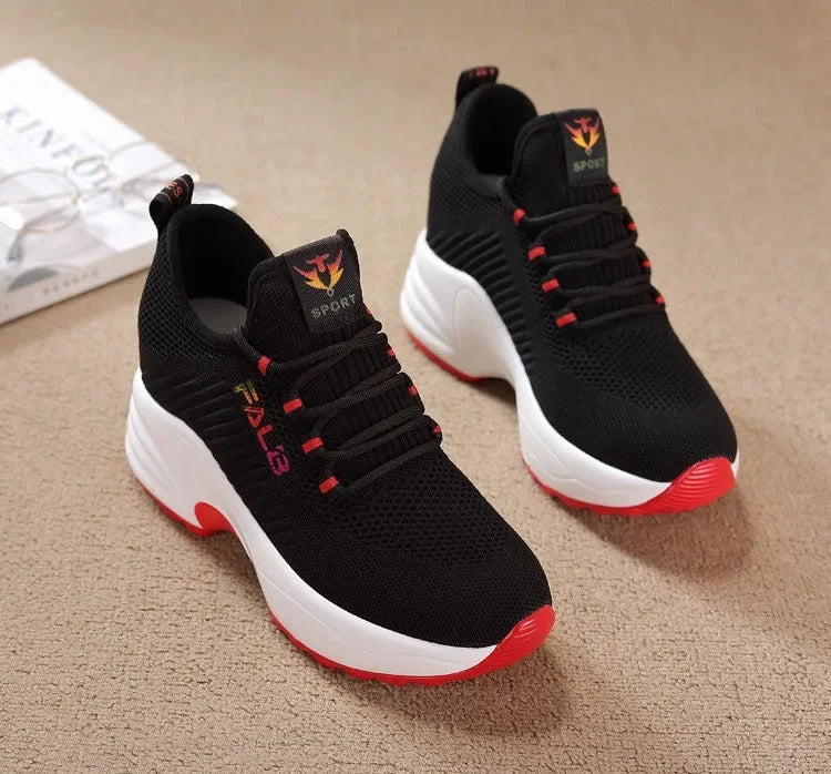 Ces sneakers combinent la légèreté et la respirabilité du tricot avec l'élégance d'un talon compensé. Parfaites pour vos journées actives, elles vous offrent confort et style sans compromis. Leur semelle épaisse antidérapante garantit une marche sûre et confortable, tandis que leur design moderne sublime votre silhouette.