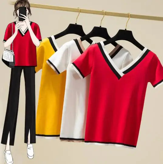 Ajoutez ce t-shirt col V rayé à votre panier maintenant et adoptez un style casual chic intemporel !