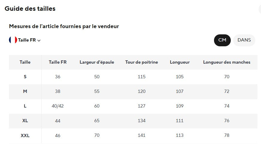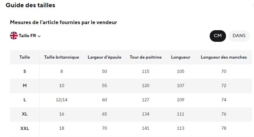 Pour garantir un ajustement parfait, veuillez consulter le tableau des tailles disponible dans la fiche produit ci-dessous avant de commander.