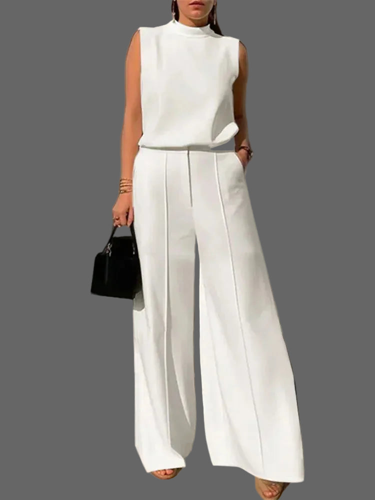 Portez l'ensemble complet pour un look harmonieux et épuré, ou mixez les pièces séparément. Le débardeur se marie avec un jean ou une jupe crayon, tandis que le pantalon large s'associe avec une chemise blanche ou un pull fin. Ajoutez des accessoires minimalistes (bijoux discrets, sac structuré) et des escarpins ou sandales élégantes pour parfaire votre tenue épurée.